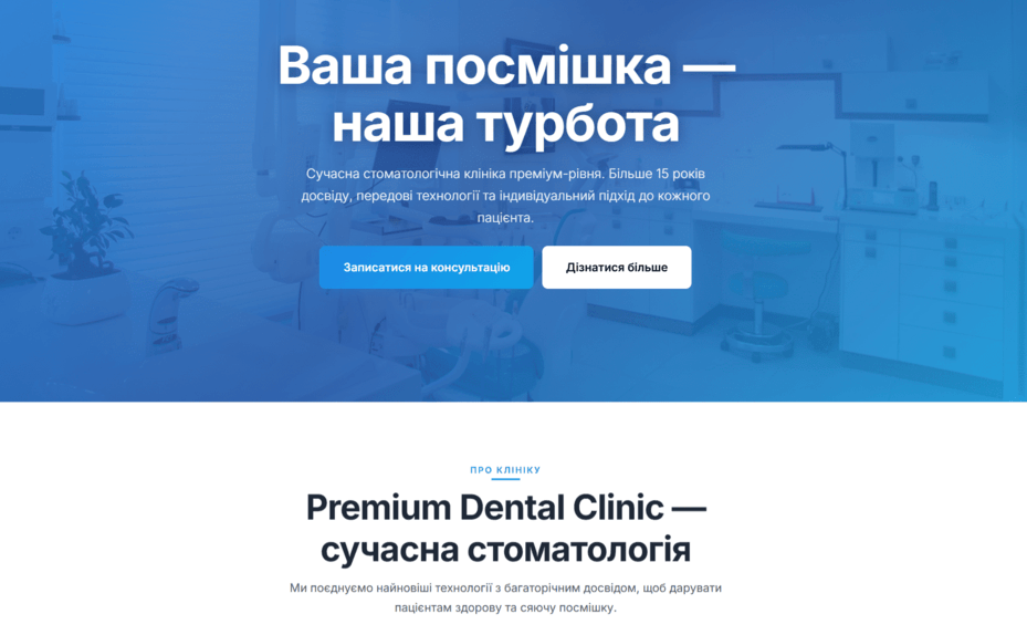 This template is идеально suited for dental clinics, private dentists, medical centers, and other healthcare businesses that want a modern website without the high cost of custom development.